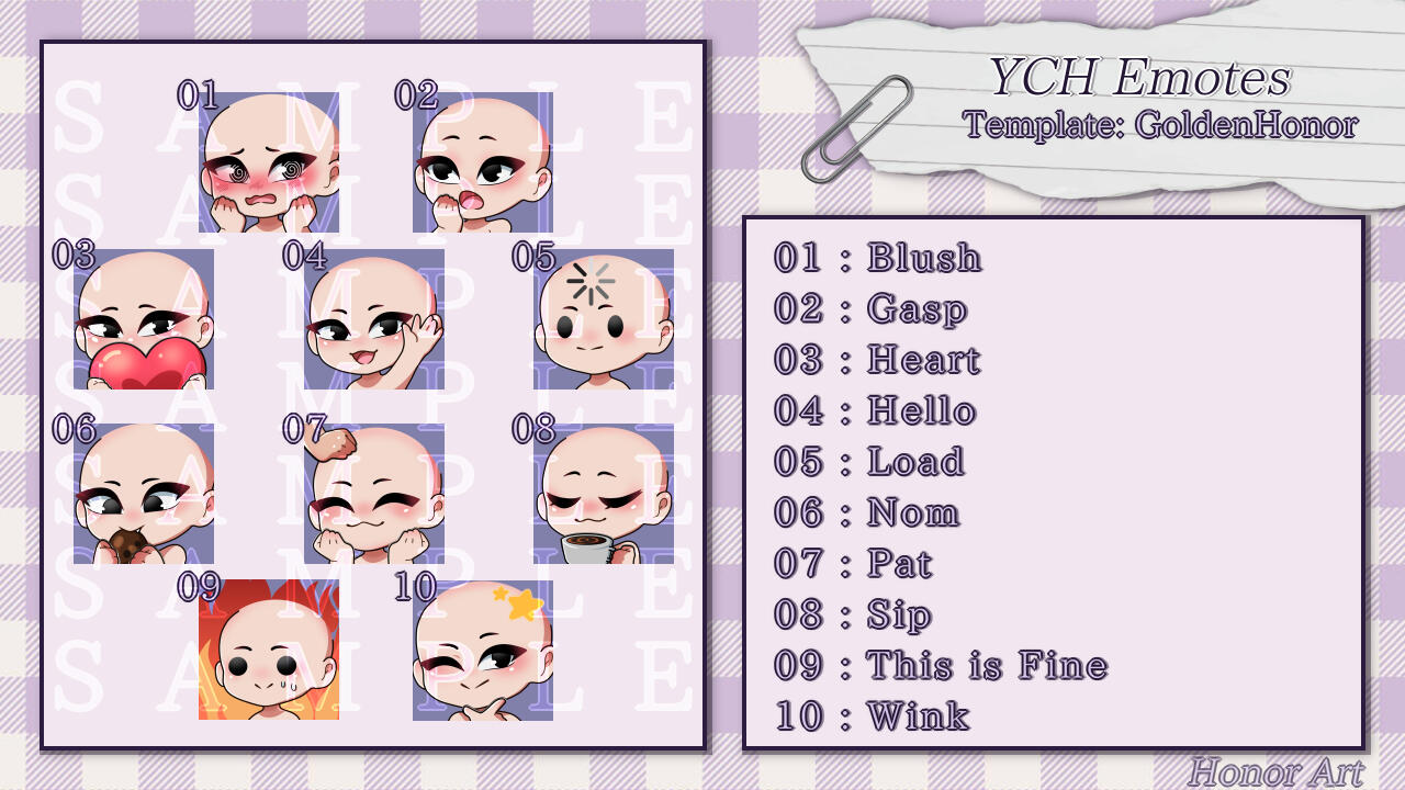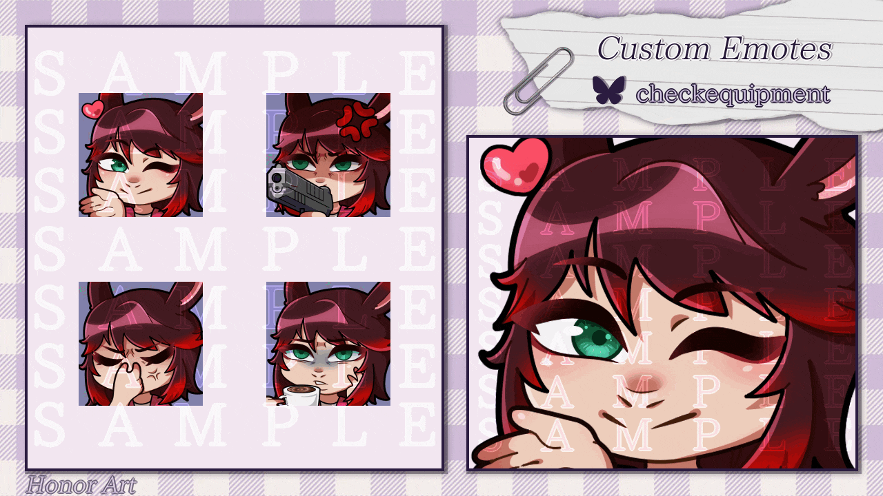 ⤷ Minimum Purchase : x3 | Up to x20 maximum per commission.✧ You'll receive the emotes in .PNG and in 5 sizes for Twitch and Discord.